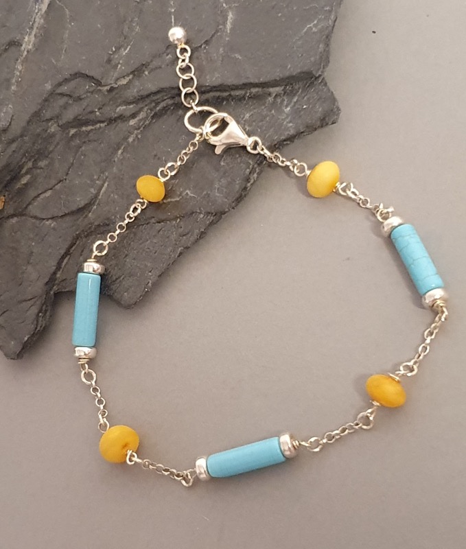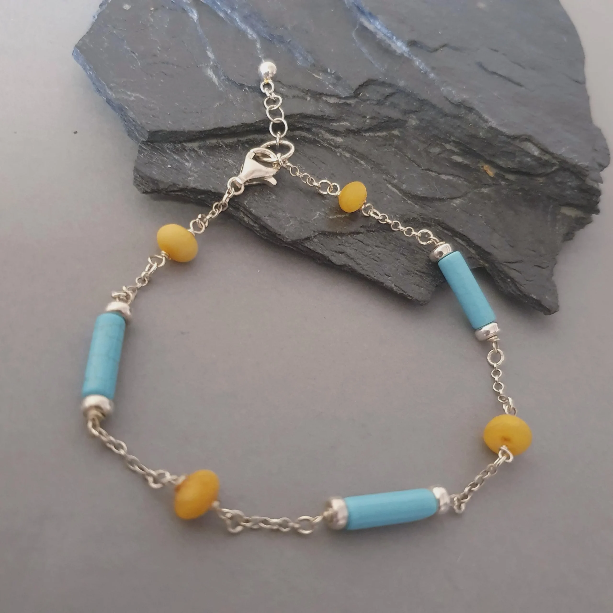 Sterling Silver (925) Bracelet with Amber and Turquoise