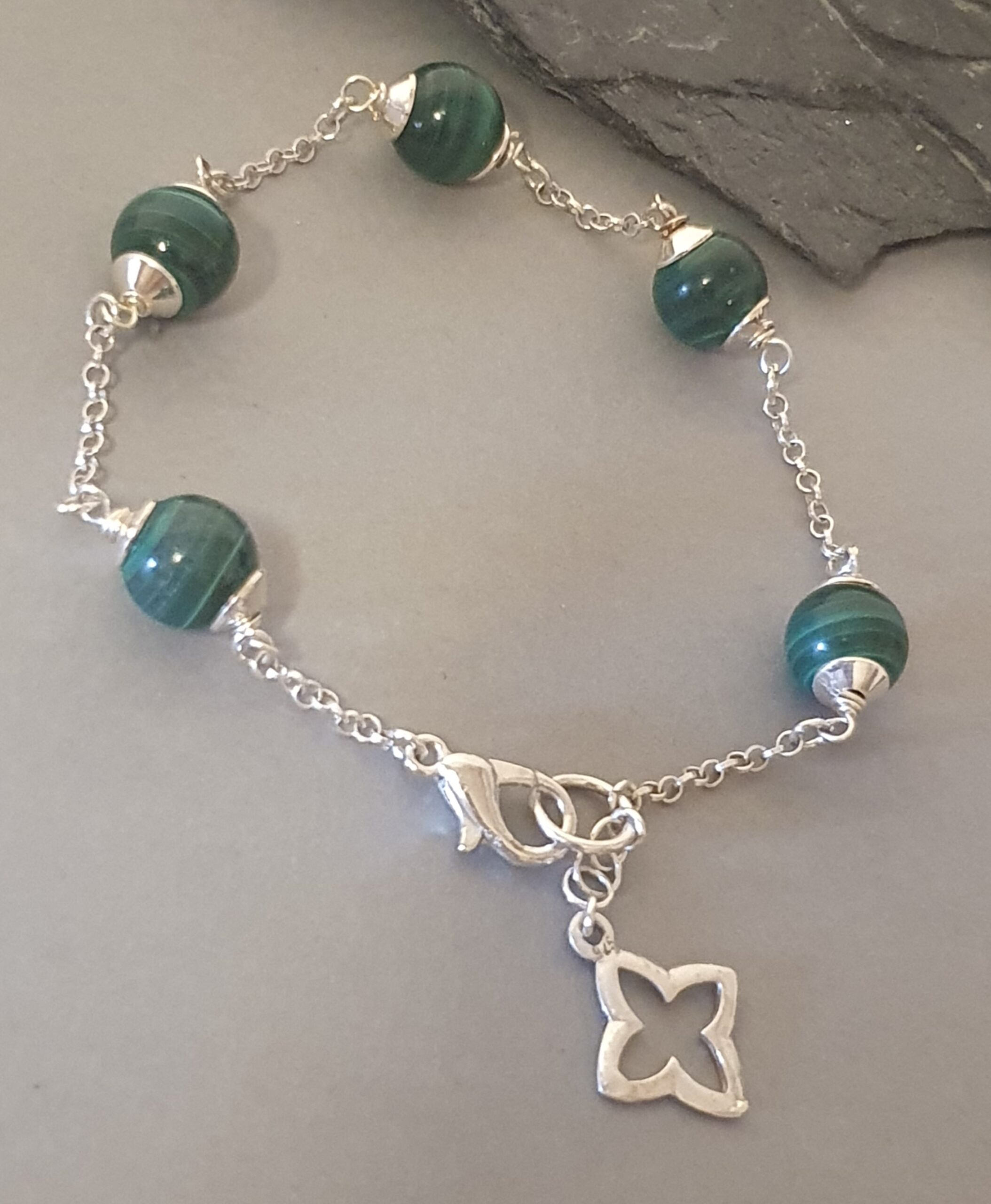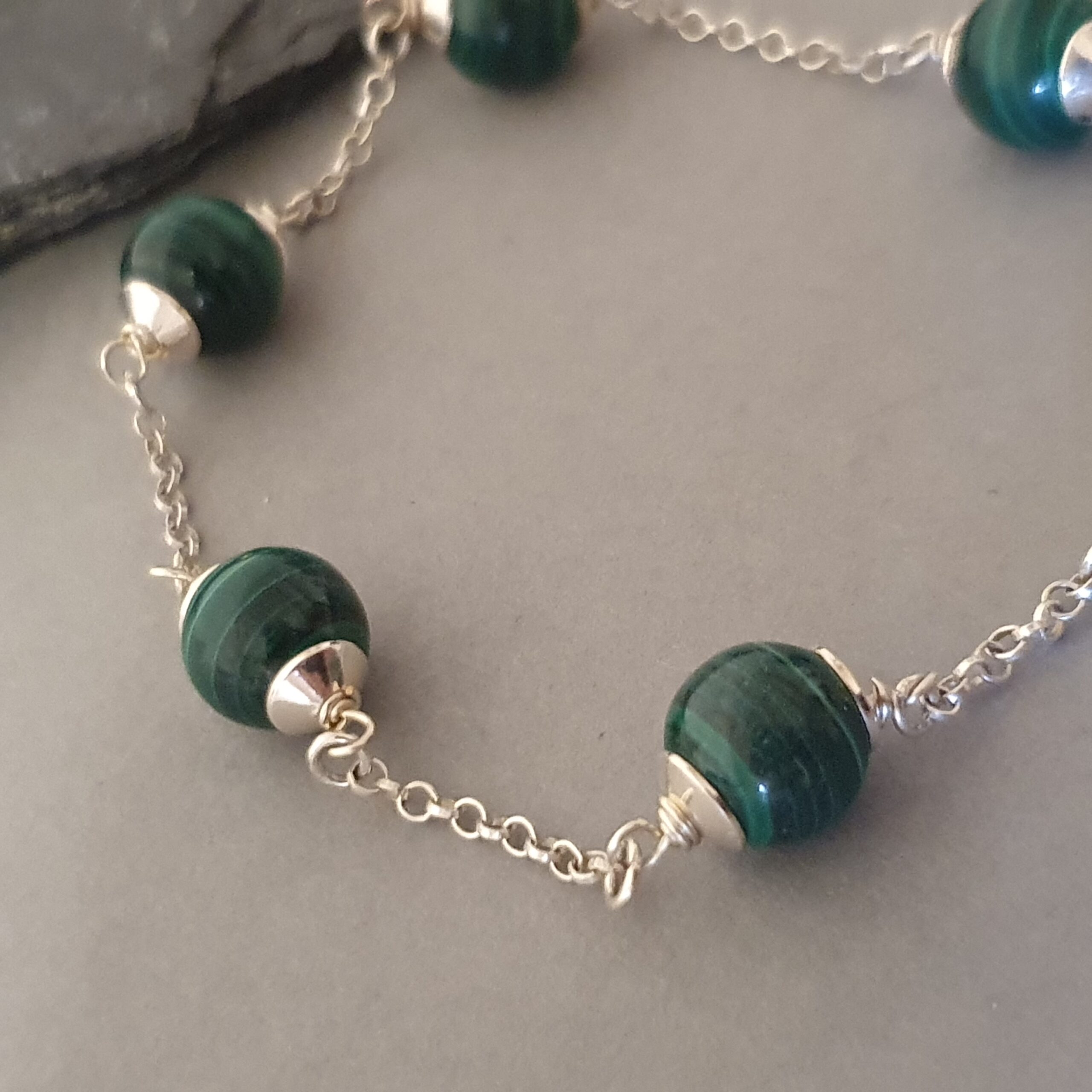 Srebrna Bransoletka 925 z Malachitem – Zielona, Delikatna