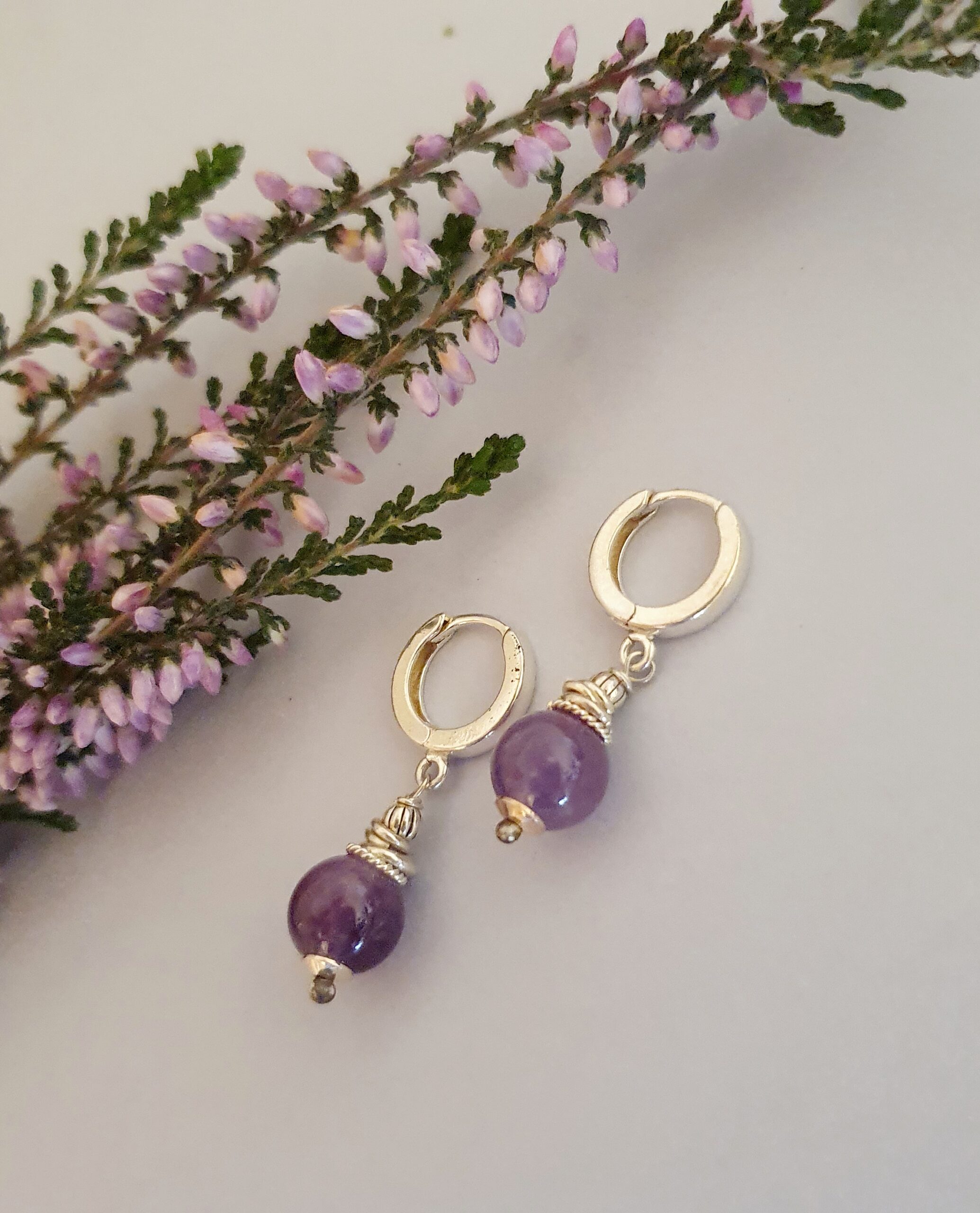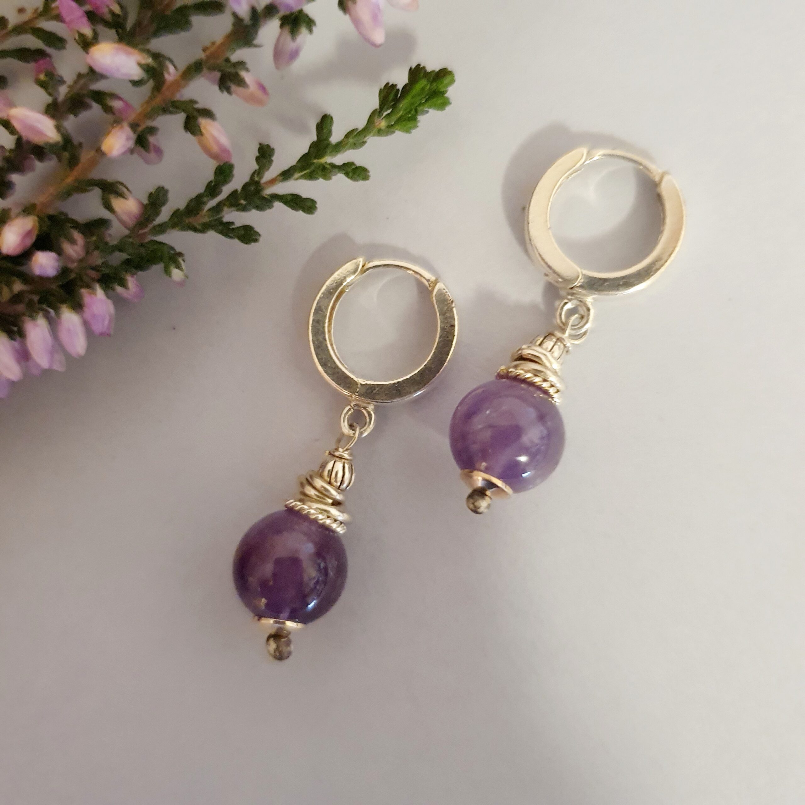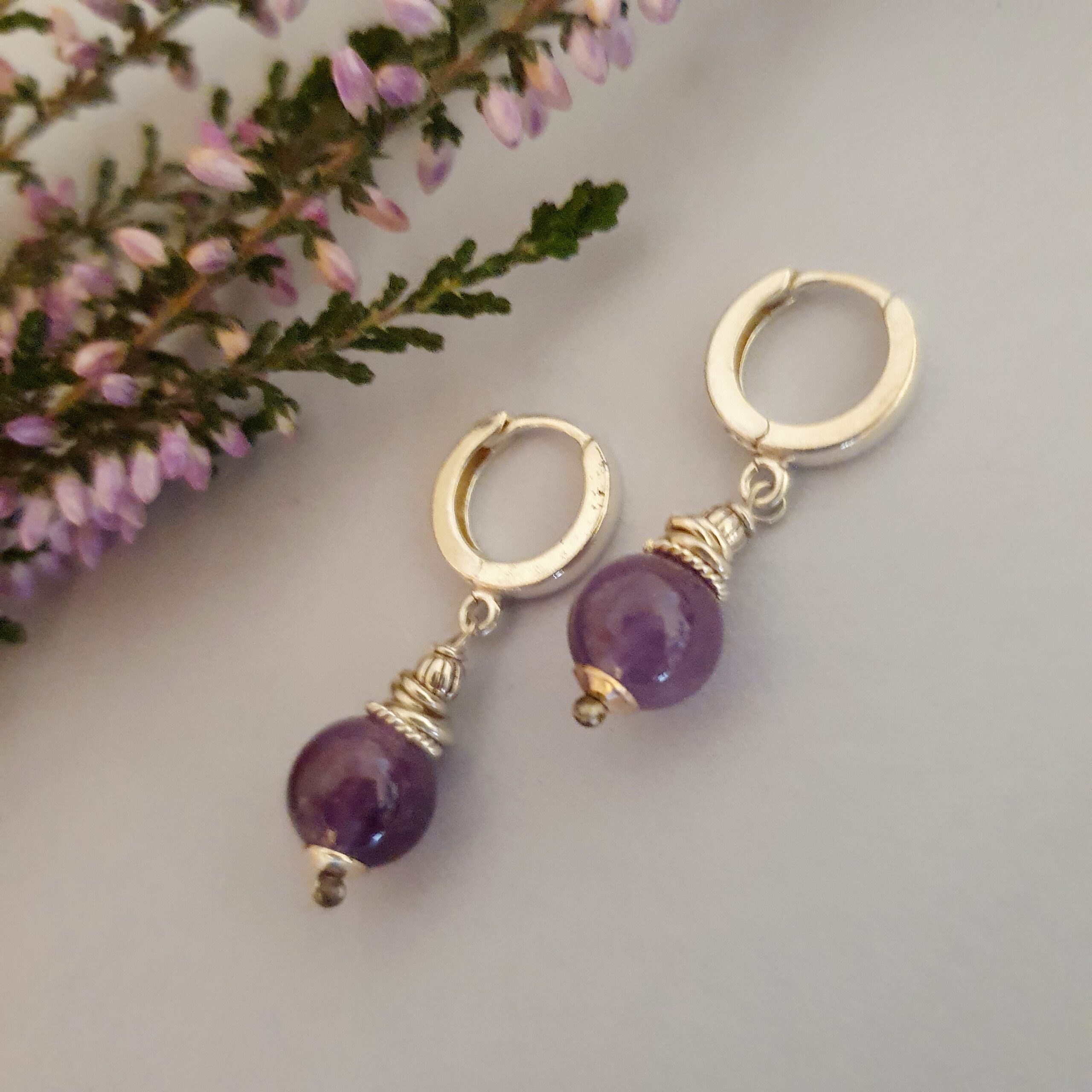 925 Srebrne kolczyki z ametystem – nowoczesny, minimalistyczny design, ręcznie robiona biżuteria