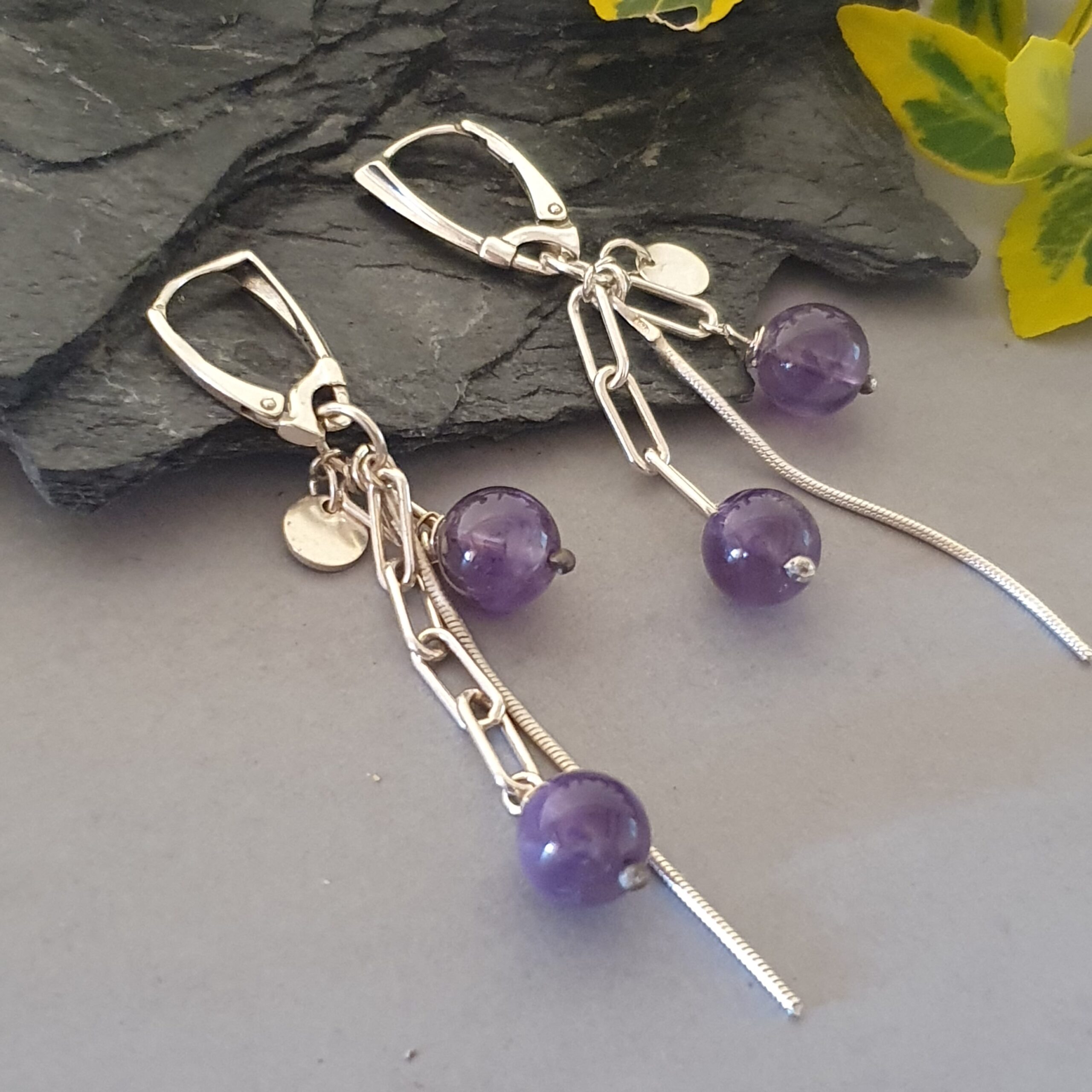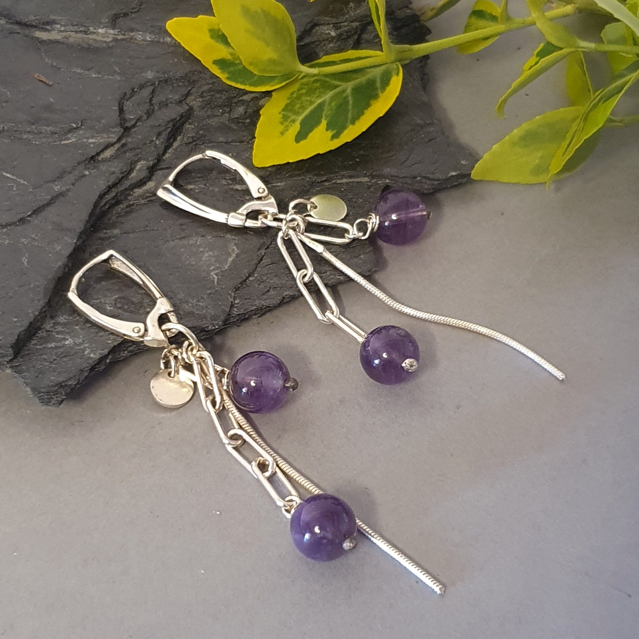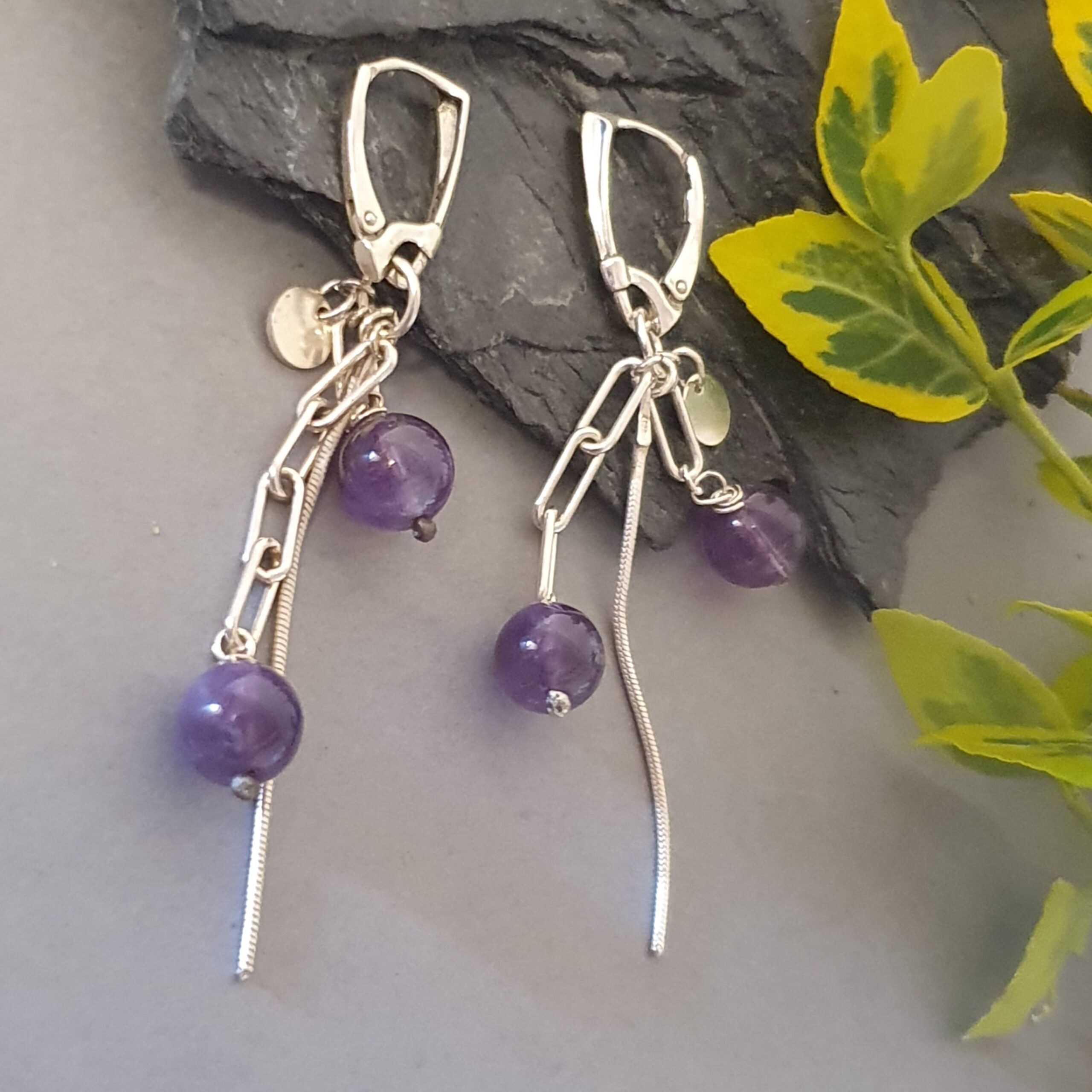 Srebrne kolczyki z ametystem – delikatny, nowoczesny i zwiewny design