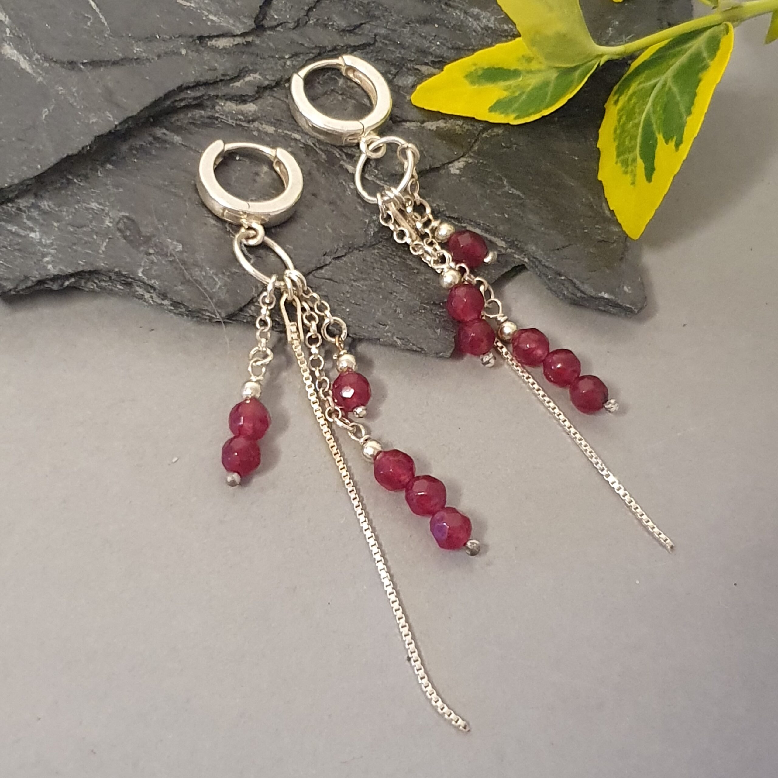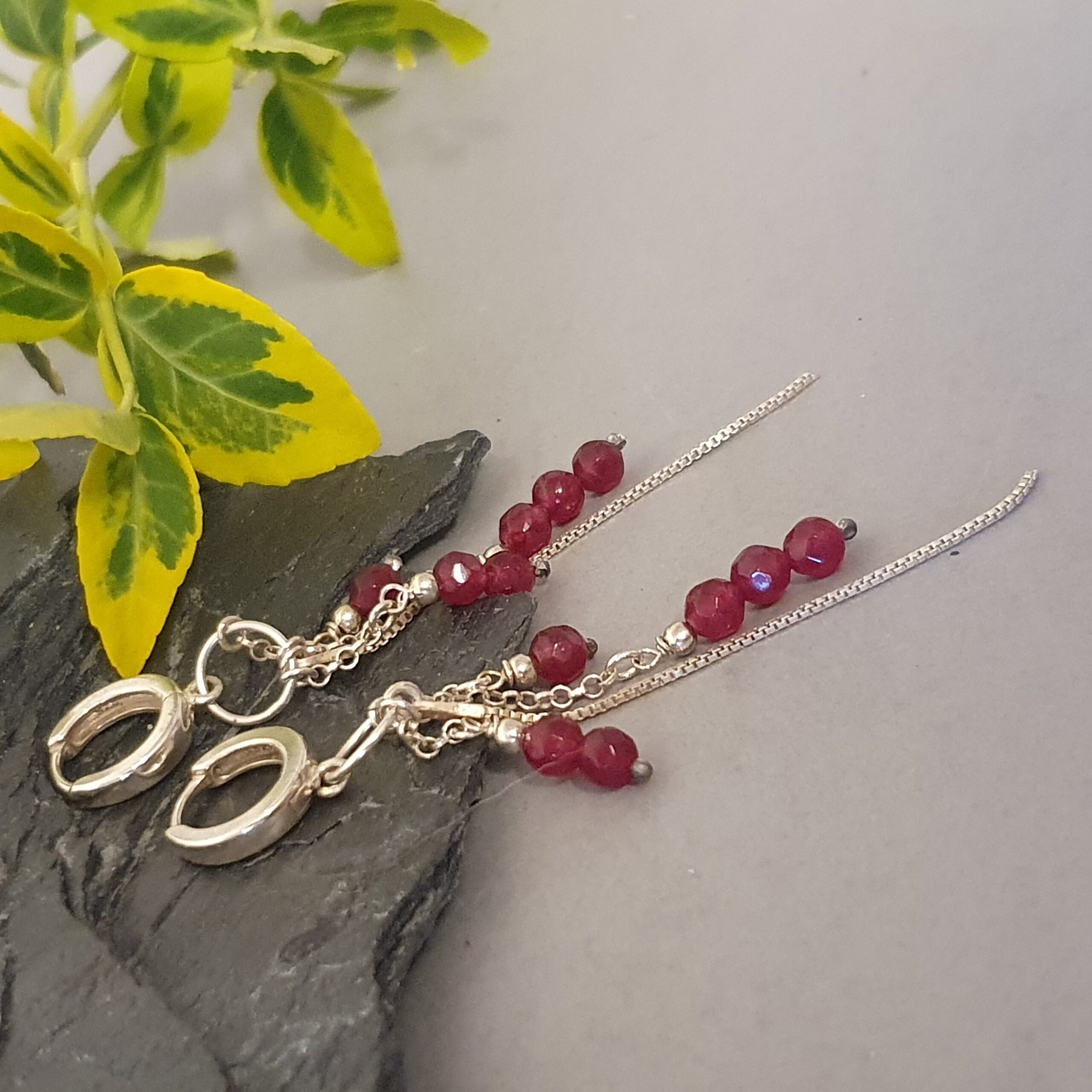 Eleganckie, długie kolczyki wykonane ręcznie ze srebra próby 925, ozdobione naturalnym granatem o głębokiej, winnej barwie. To biżuteria, która łączy w sobie lekkość, kobiecość i wyrazisty kolor – idealna dla kobiet kochających romantyczny styl i delikatny połysk naturalnych kamieni.