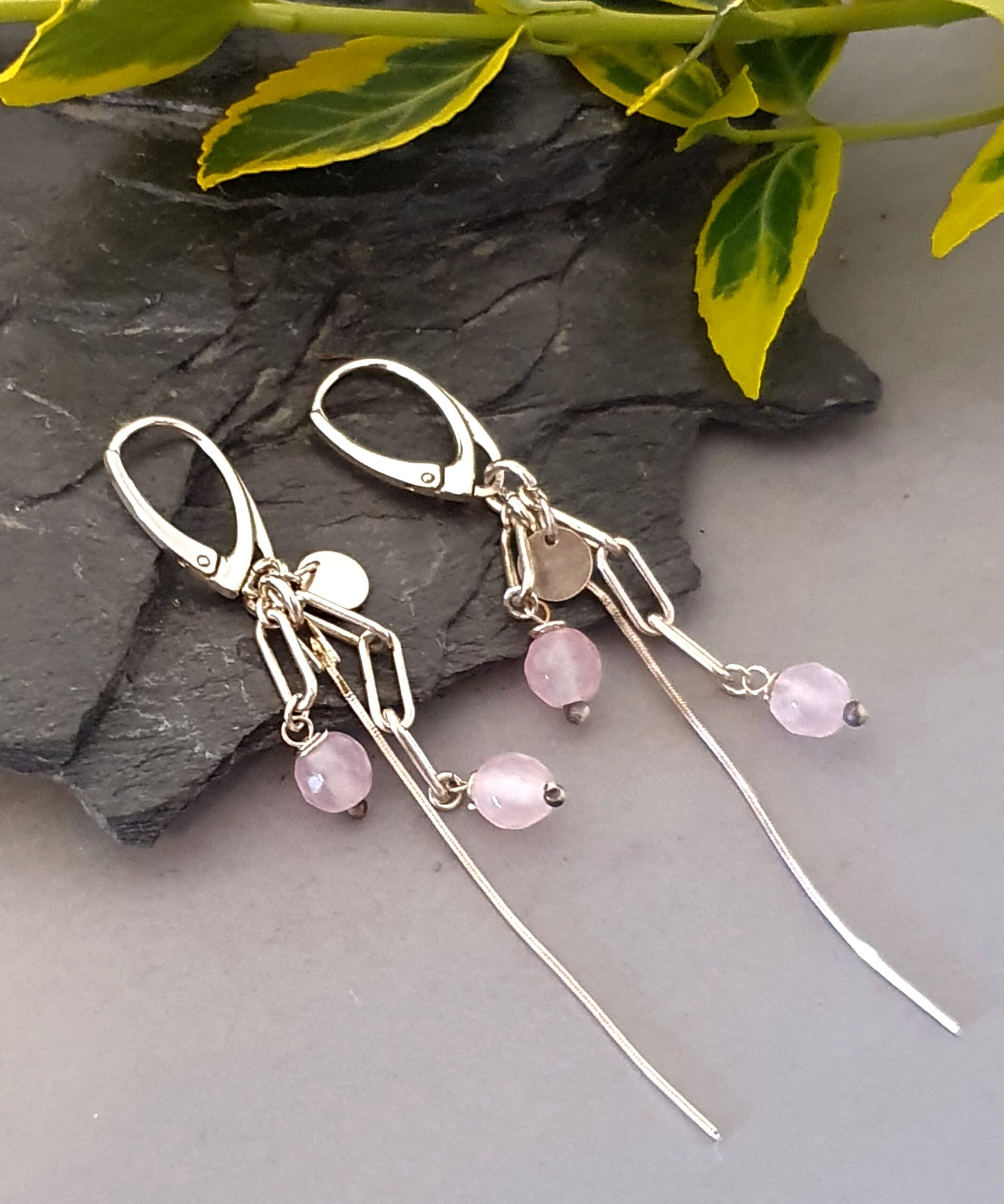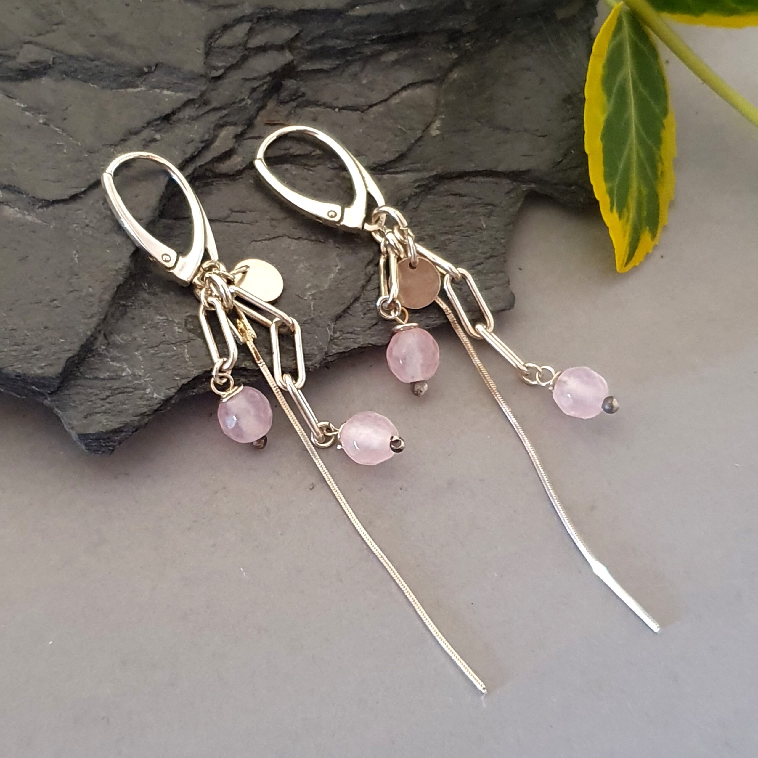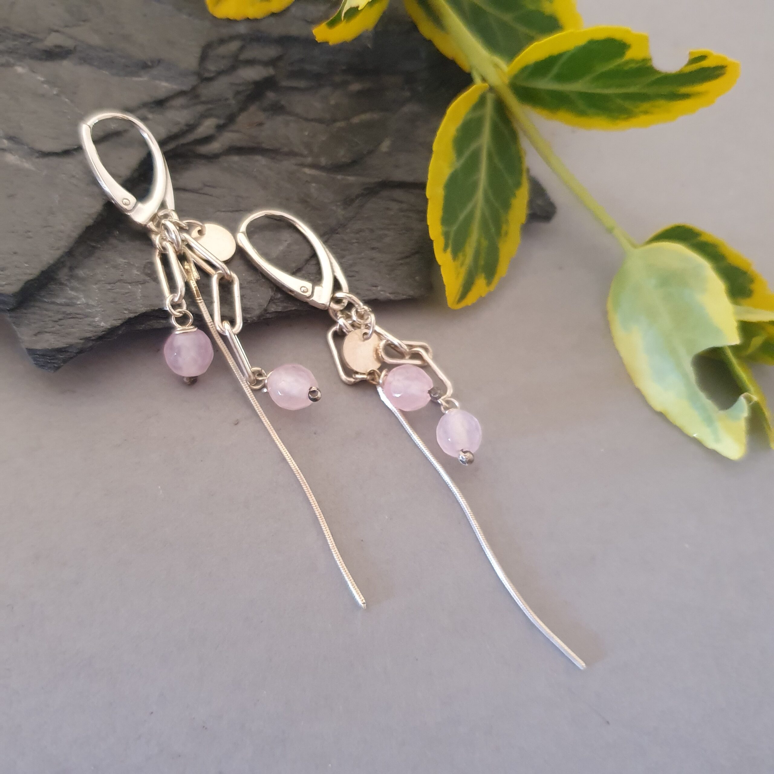 Srebrne kolczyki z kwarcem różowym – delikatny, nowoczesny i zwiewny design
