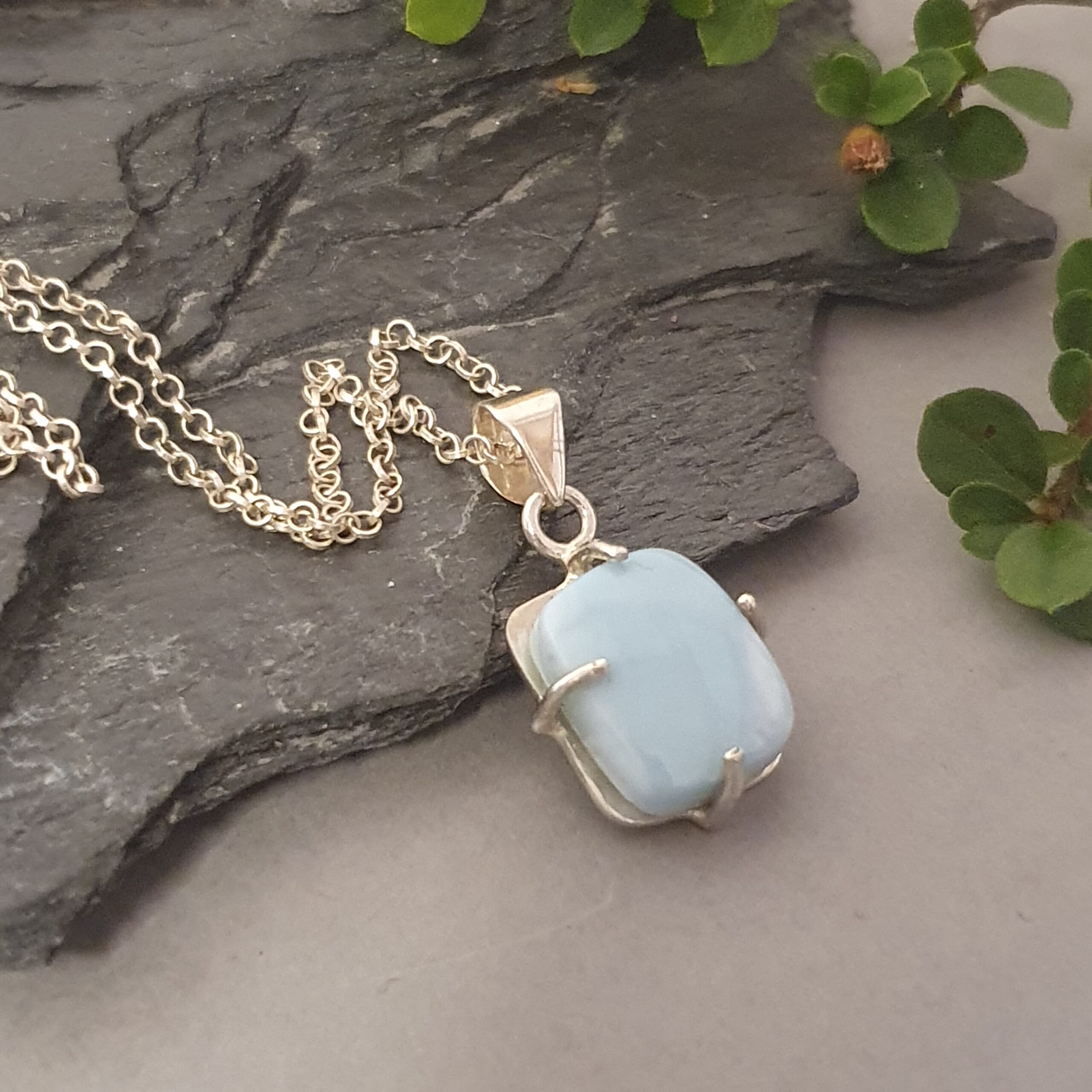 Minimalistyczny naszyjnik z larimarem – srebro próby 925, unikalna biżuteria handmade, prostokątny kamień