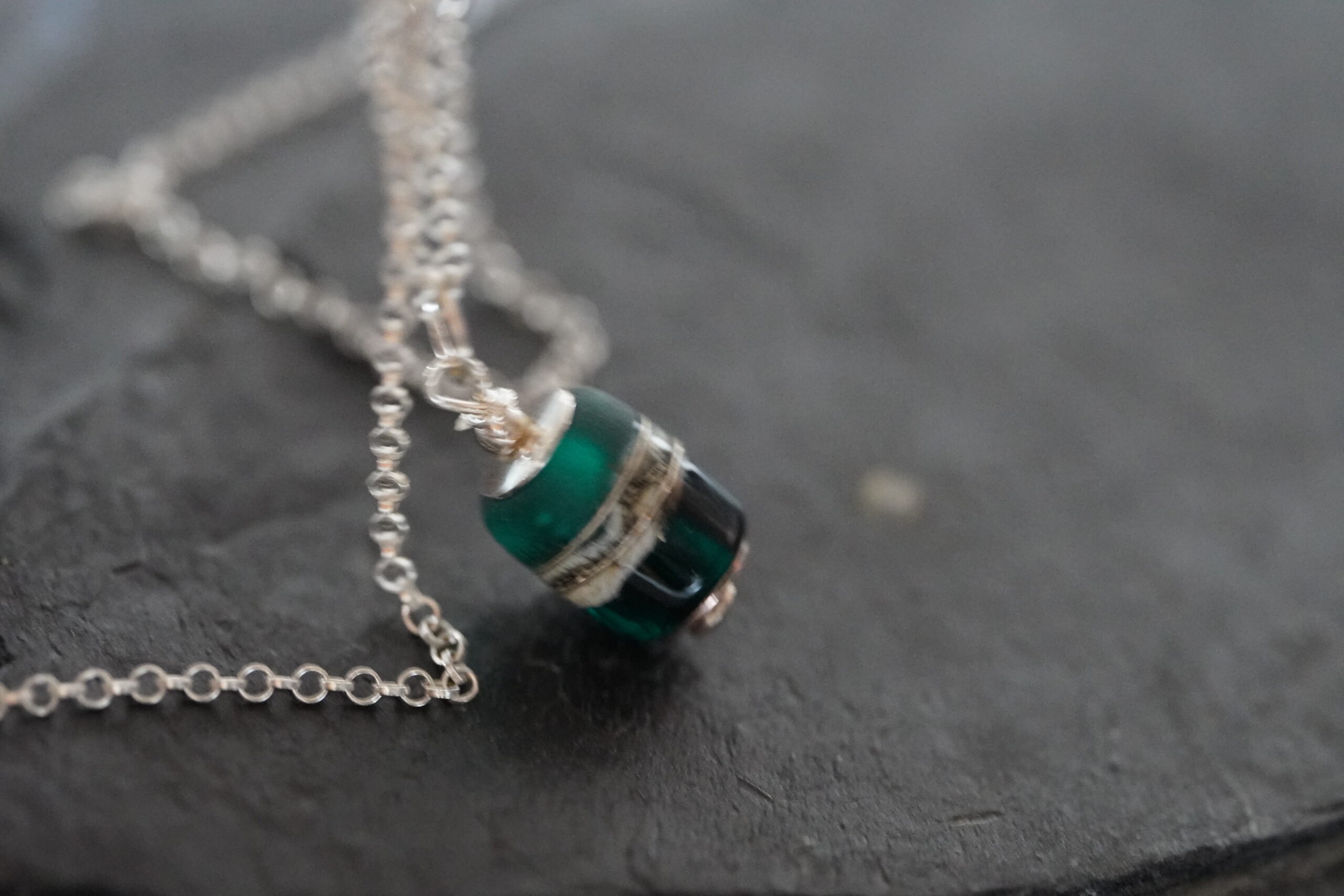 Srebrny naszyjnik lampwork – seladynowe szkło